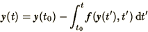 . Although (1.8) is formally correct, in practice it is usually impossible to evaluate the integral on the right-hand-side as it presupposes the solution y(t). We will have to employ an approximation. All differential equations require boundary conditions. Here we will consider cases in which all the boundary conditions are defined at a particular value of t (e.g. t=0). For higher order equations the boundary conditions may be defined at different values of t. The modes of a violin string at frequency w obey the equation: